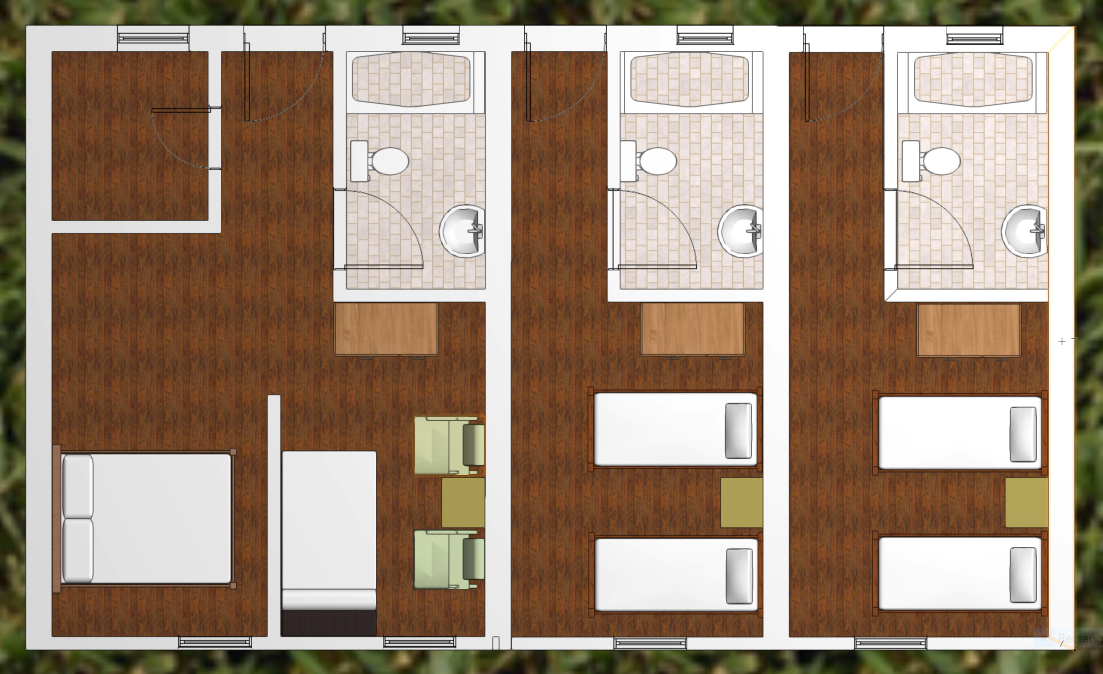All rooms can be configured to either be one queen size bed or sets of twin beds making the rooms suitable for couples and/or roommates.